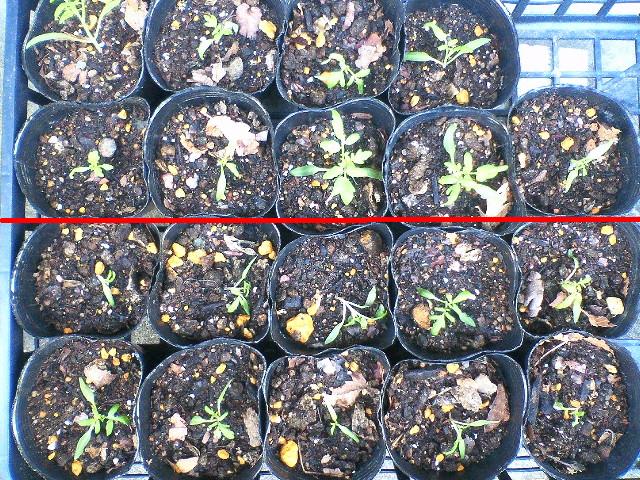 赤線から上が小玉苗、赤線から下が中玉苗。