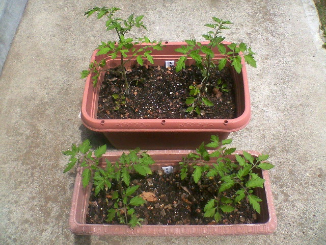 5月10日。前回の投稿から6日。中玉苗の1つがまた枯れてしまいました。小玉苗の3つがすこぶる元気!同じ環境下で育ててるのに何でこんなに違うのでしょう??