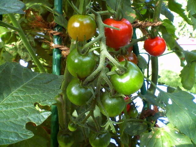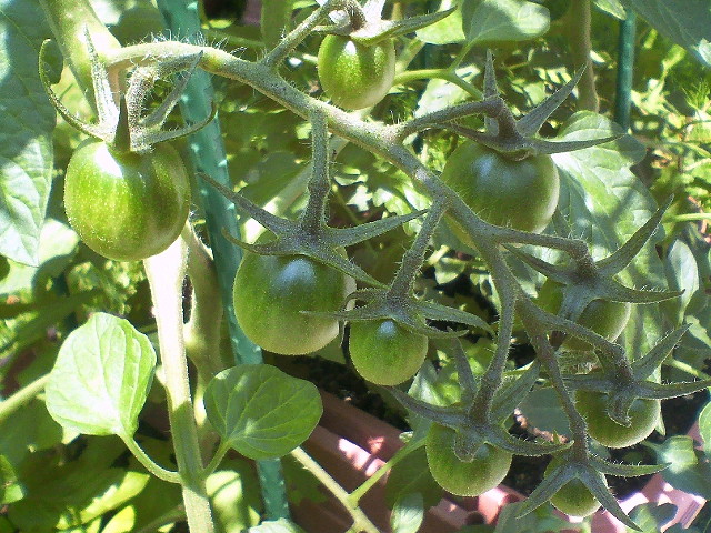 7月21日。本日、小玉トマトが初収穫できました!!小玉、中玉、こぼれ種トマトの順に収穫できそうな感じです。