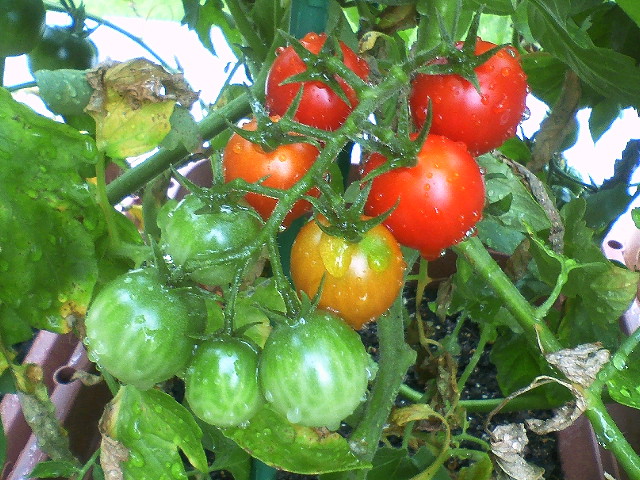 7月21日。本日、小玉トマトが初収穫できました!!小玉、中玉、こぼれ種トマトの順に収穫できそうな感じです。