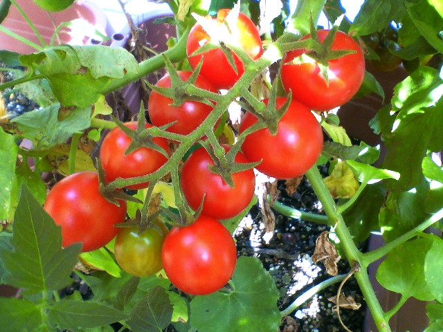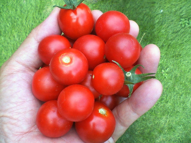 本日収穫した小玉トマト。とっても真っ赤なプチトマトです!!